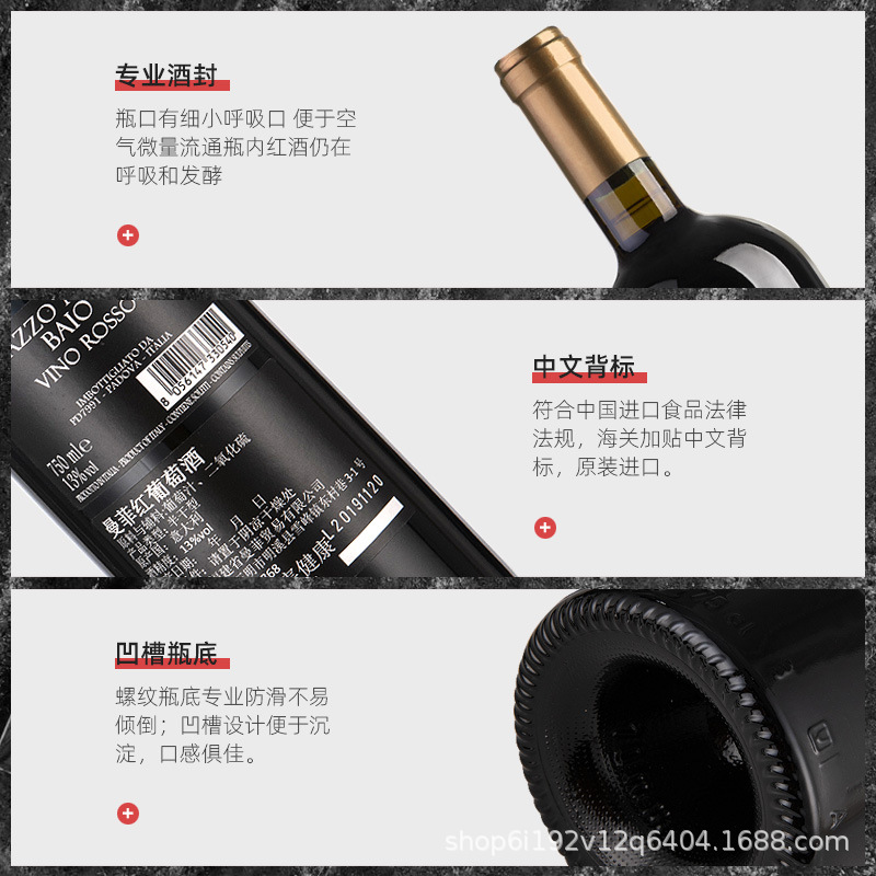 欧品村精选意大利原瓶进口红酒曼菲BAIO13.5度半干型红葡萄酒