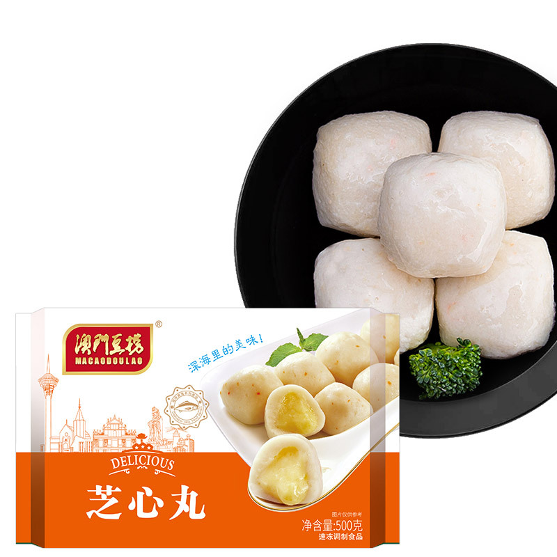澳门豆捞芝士丸火锅食材咖喱鱼丸关东煮麻辣烫拉丝芝心丸500g批发