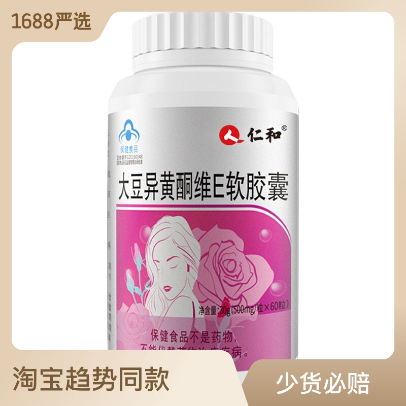 一件代发】药都仁和大豆异黄酮维E软胶囊60粒VE免疫力女性更年期