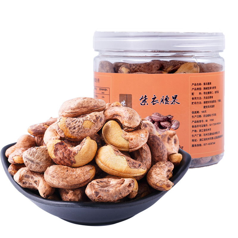 新货大颗粒腰果仁越南带皮紫衣腰果160克罐装休闲零食批发