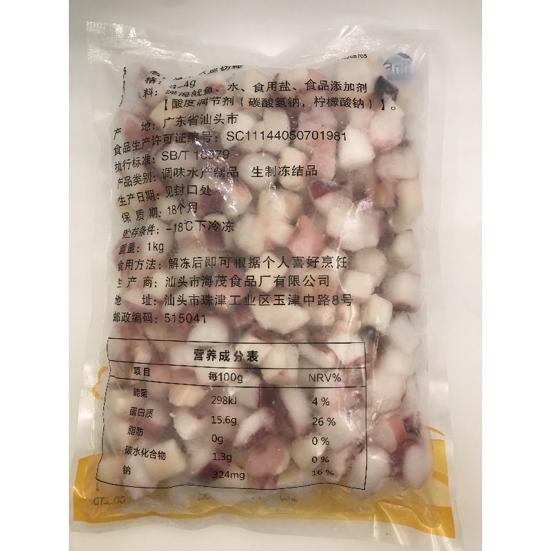 章鱼粒章鱼是毛重1千克的 去冰后净重是650克左右 约200多粒.每粒2到3克左右