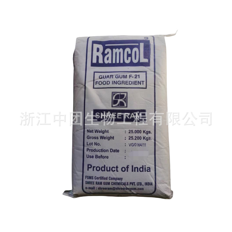 瓜尔豆胶(瓜尔胶)由豆科植物瓜尔豆(Cyamposis tetragonolobus)的种子去皮去胚芽后的胚乳部分,干燥粉碎后加水,进行加压水解后用20%的乙醇沉淀,离心分离后干燥粉碎而得。