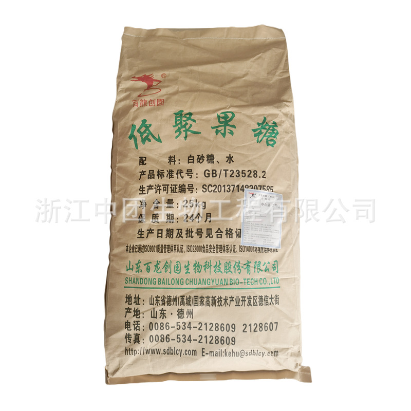 低聚果糖是一种活性物质。甜度为蔗糖的0.3-0.6倍。既保持了蔗糖的甜味性质,又比蔗糖甜味清爽。已在乳制品、乳酸菌饮料、固体饮料、糖果、饼干、面包、果冻、冷饮等食品中应用。