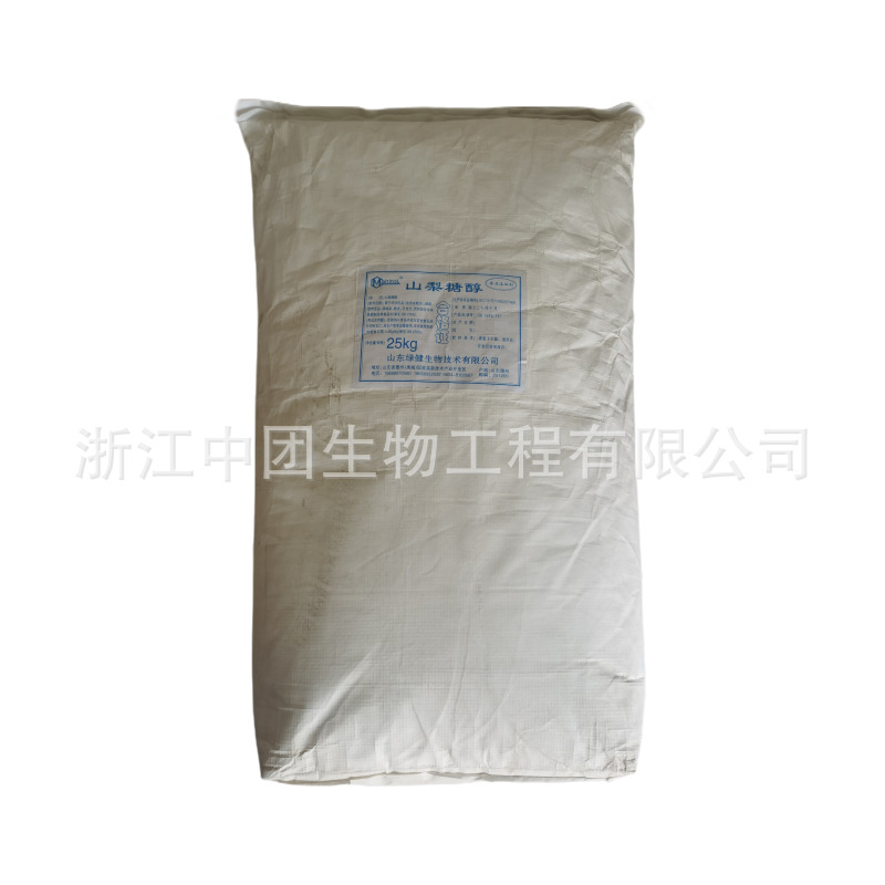 山梨糖醇为白色吸湿性粉末或晶状粉末、片状或颗粒,易溶于水(1g 溶于约0.45mL水中),微溶于乙醇和乙酸。有清凉的甜味,甜度约为蔗糖的一半,热值与蔗糖相近。食品工业中多为69~71%含量的山梨糖醇液。