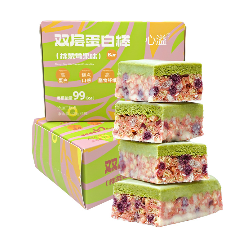 抹茶莓果味双层蛋白棒代餐饱腹能量棒乳清不额外添加蔗糖健身零食