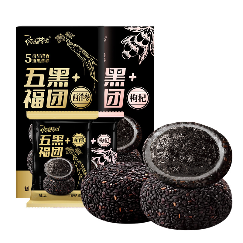 五黑福团 阿婆家的黑芝麻麻薯传统糕点芝麻丸点心糕点零食麻糬