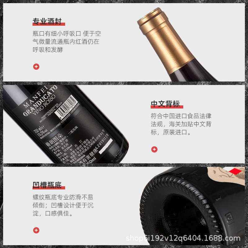 欧品村精选意大利原瓶进口红酒曼菲格朗图朵13.5度半干型红葡萄酒