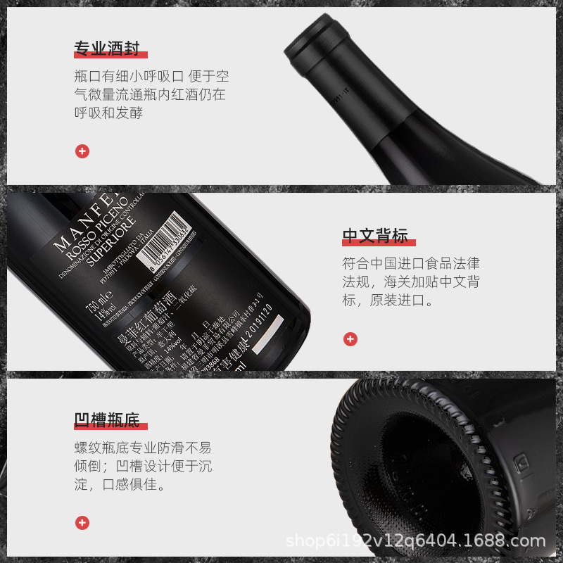 欧品村精选意大利进口红酒DOC级曼菲皮切诺14度半干型红葡萄酒