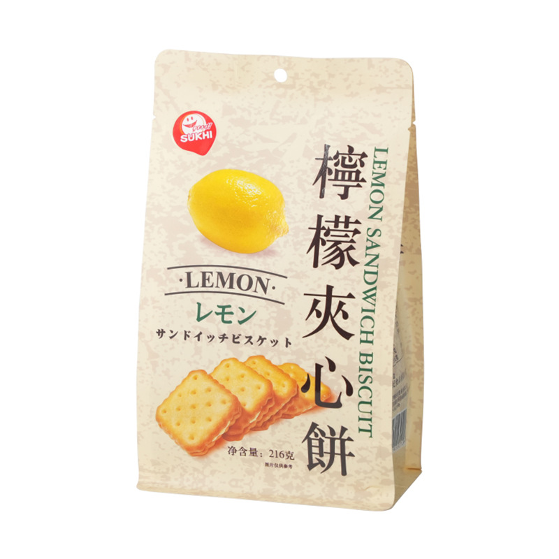 SUKHI柠檬夹心饼干216g袋装单独小包装点心零食办公室休闲夜宵