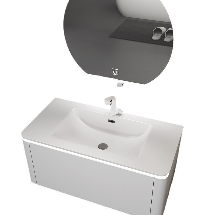 欧洛莱奶油风肤感一体盆浴室柜组合现代卫生间洗漱台洗脸台盆浴柜