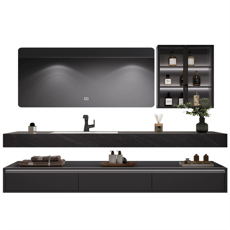 浴室柜酒店风双层岩板无缝拼接洗漱台卫生间洗脸盆柜双盆洗手盆柜
