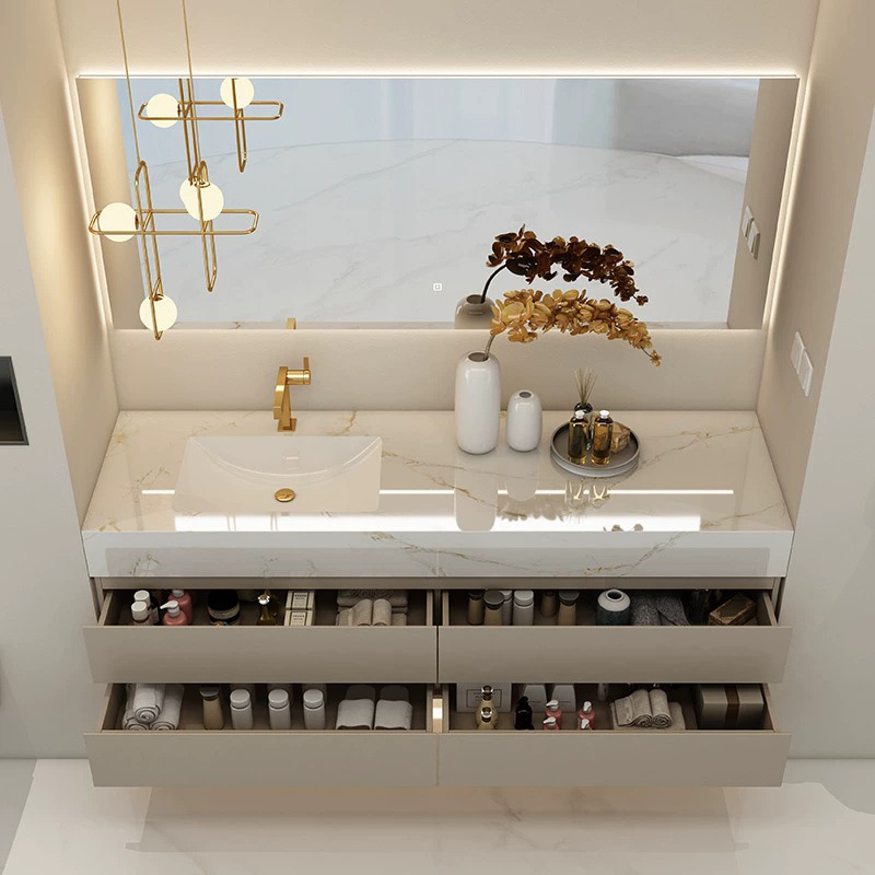 智能岩板陶瓷无缝一体现代简约洗手洗脸盆浴室柜组合卫生间洗漱台