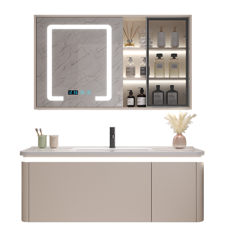 奶油风网红陶瓷盆一体智能浴室柜组合卫生间洗手池洗漱台洗脸盆柜