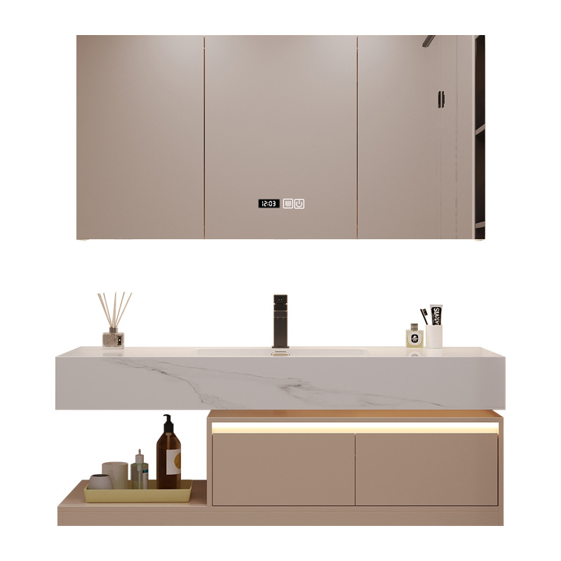 轻奢酒店风岩板无缝盆浴室柜组合洗漱台洗手池洗面盆智能镜卫生间