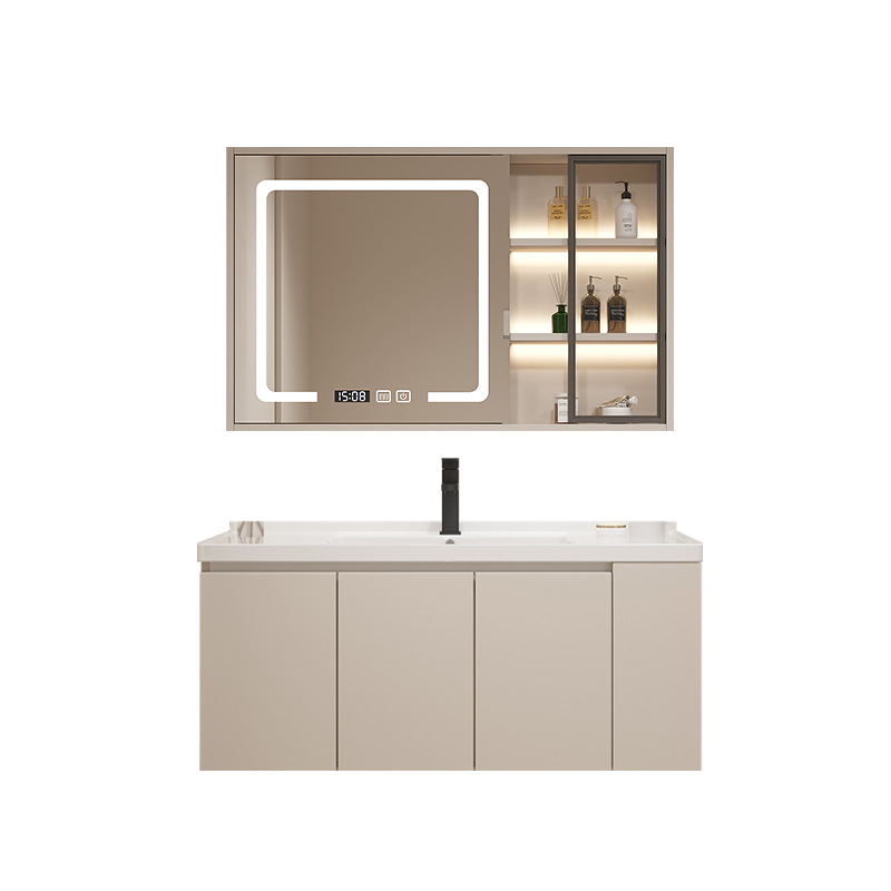 陶瓷一体盆浴室柜组合奶油风洗手脸盆柜卫生间洗漱台轻奢现代简约