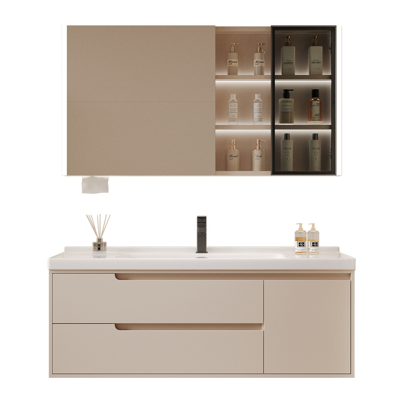 奶油风浴室柜组合橡木陶瓷一体盆智能镜洗手池洗漱台洗面盆卫生间
