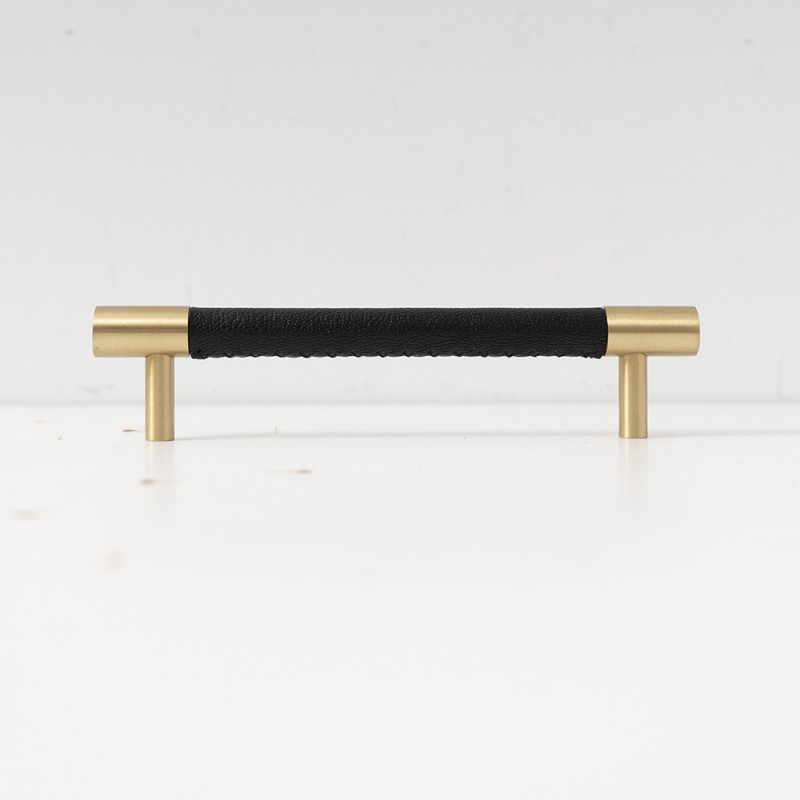 ins 北欧黄铜粉皮把手斗柜床头柜玄关柜抽屉手工缝制皮拉手 白色