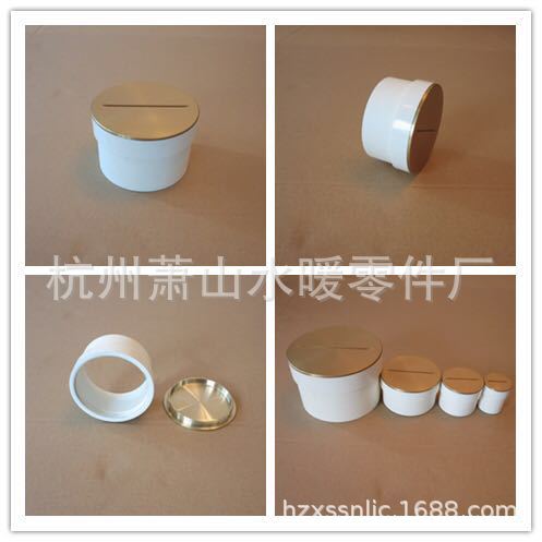 该清扫口[克令筒]面板为铜合金,下端材质为PVC。管径与PVC管径相符适用于PVC排水管道用胶水粘结连结。安装该产品表面美观,容易打开检修。主要规格有DN50、DN75、DN100、DN150即De50、De75、De110、De160等多种。