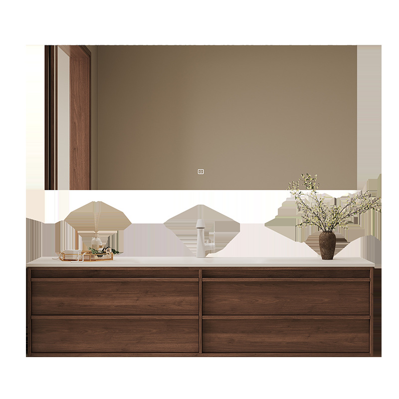 设计师复古中古骨骼胡桃木岩板热弯浴室柜卫生间双盆洗手池洗漱台