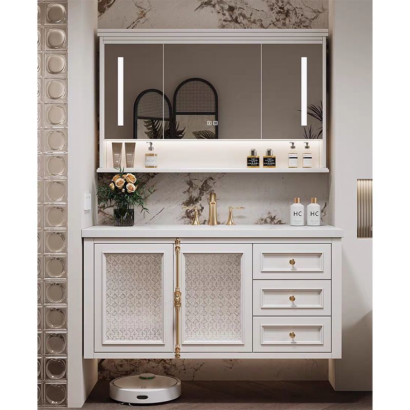 轻奢法式复古浴室柜陶瓷可丽耐岩板热弯无缝一体盆橡木烤漆洗漱台
