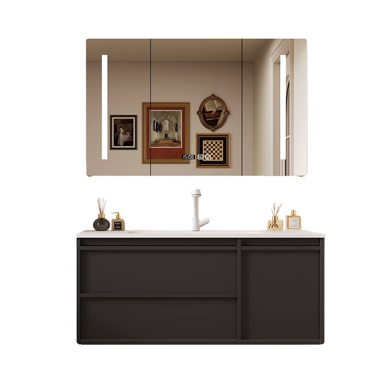 2024新款可丽耐岩板热弯无缝一体盆橡木免漆中古风胡桃色浴室柜