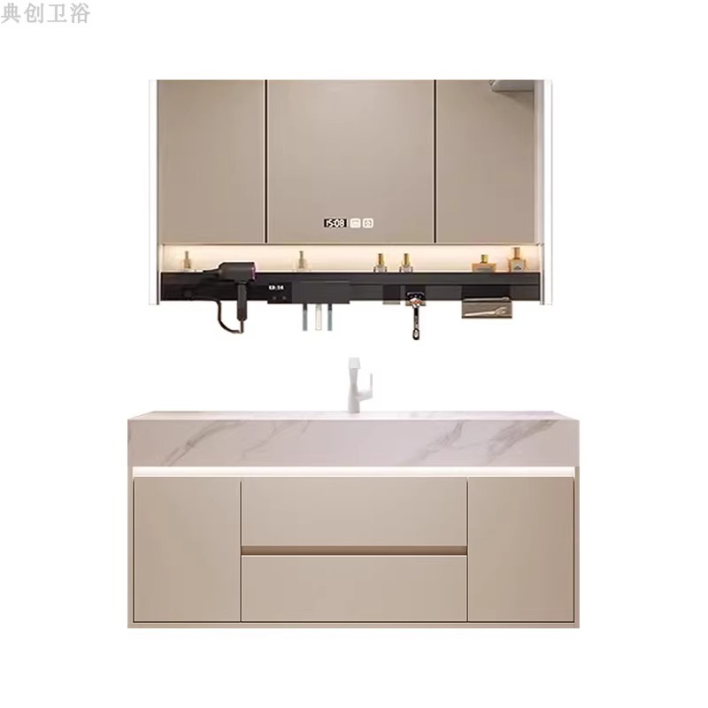 热弯岩板一体盆浴室柜卫生间洗脸盆柜组合洗漱台洗手台池智能镜柜