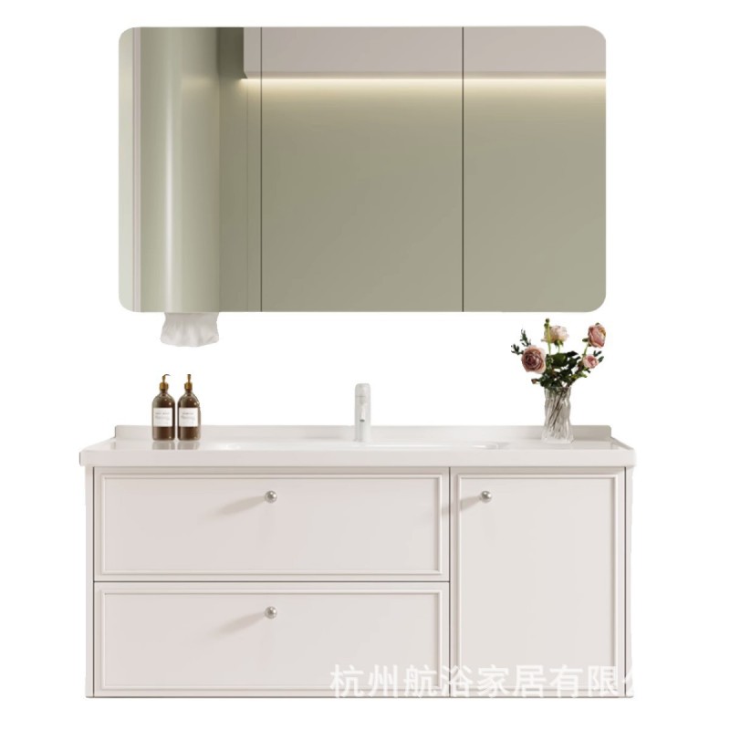橡木烤漆法式浴室柜奶油风陶瓷一体盆洗手洗脸盆柜组合洗漱台组合