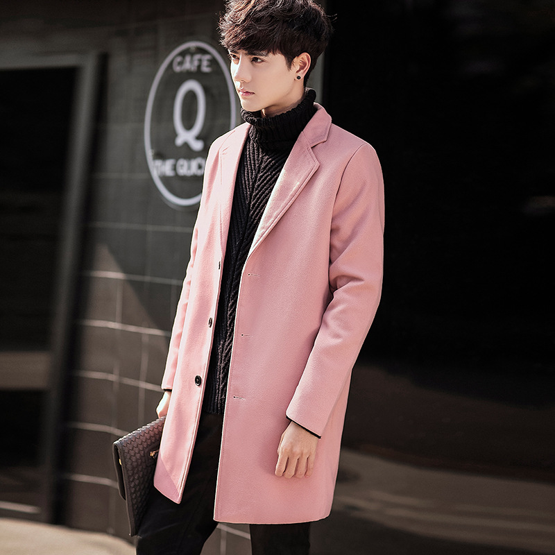 2020秋冬新款男士韩版修身中长款毛呢风衣大码潮流ins呢子大衣男