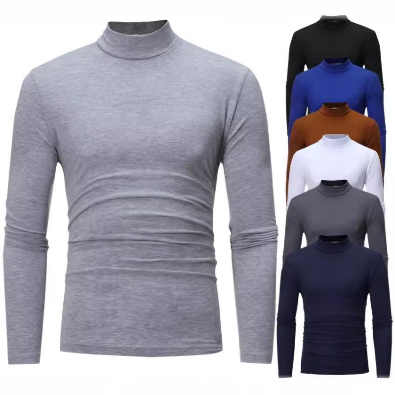 2020新款秋冬跨境男装休闲纯色高领男士修身长袖T恤打底衫