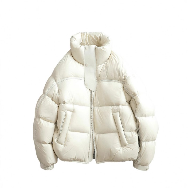 【见川】冬季韩系极简轻奢拼接皮料加厚廓形短款面包服羽绒服男