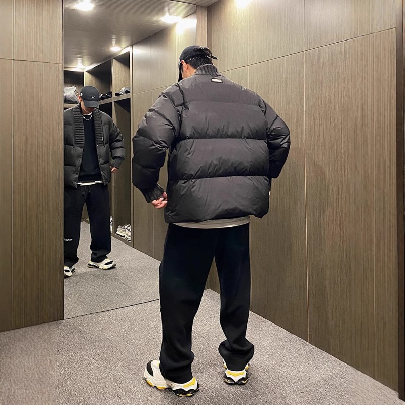 正品2024冬季小众针织拼接白鸭绒大V领羽绒服男国风纯色面包服