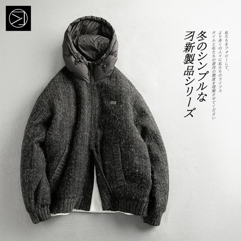 韩版男士防风连帽白鸭绒羽绒服2024冬季新款潮流美式简约针织外套