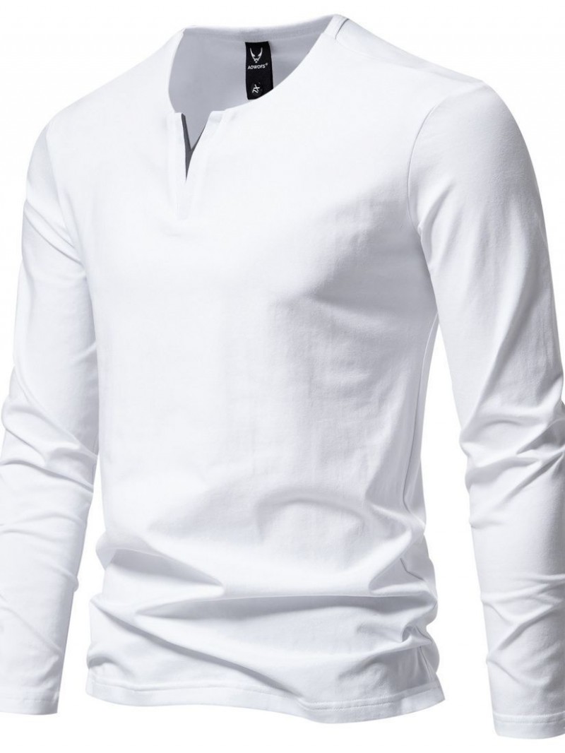 220克秘棉秋季新款男士亨利领V领长袖T恤休闲纯色打底衫大码YT233