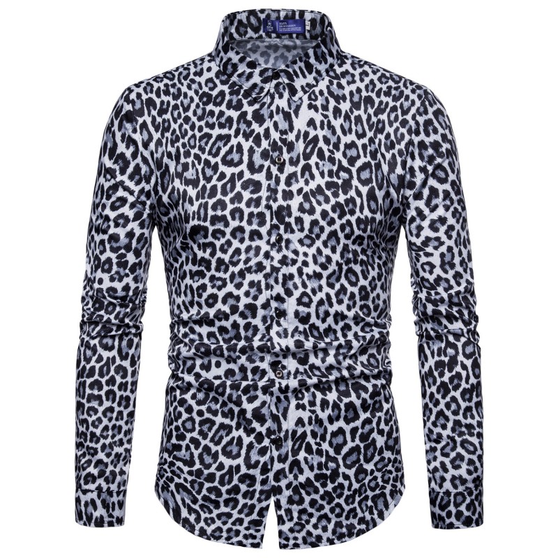 2019新款欧码男士豹纹衬衫时尚夜店数码印花男款长袖衬衫C801