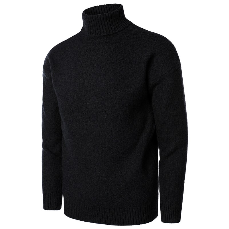 高质量男装2021冬季纯色宽松男士针织衫高领时尚毛衣打底衫 YM645