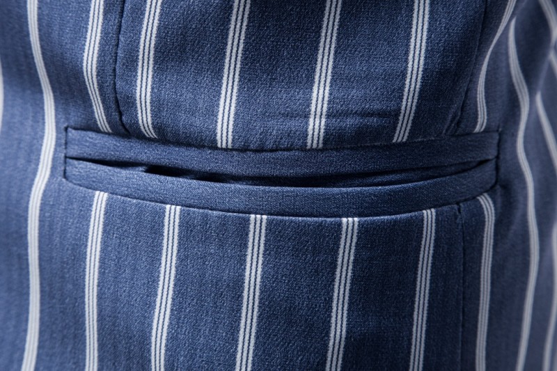 秋季新款外贸大码西服外套欧美时尚条纹两粒扣单西蓝色上衣 XF134