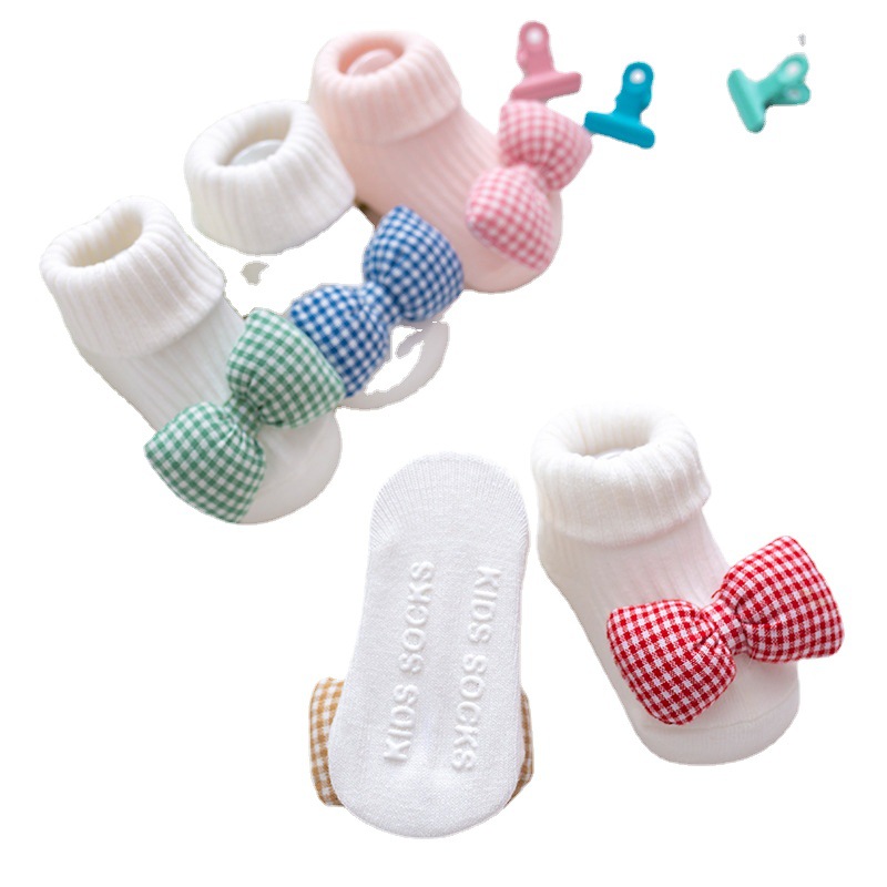 秋冬新款蝴蝶结宝宝地板袜点胶学步婴儿袜子儿童中筒袜