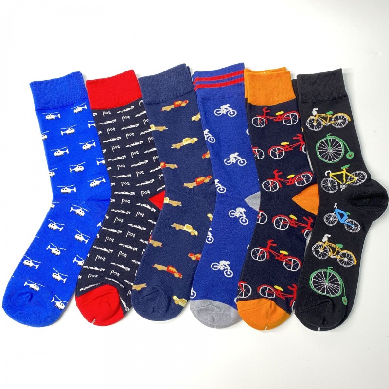 现货秋冬跨境潮流休闲男袜 直升机赛车自行车系列快乐大码男袜