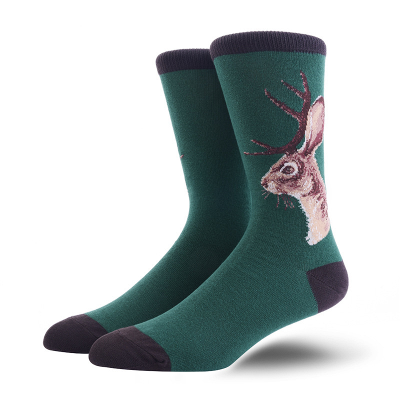 跨进新款潮袜欧美风中长筒男袜狗鲨鱼动物袜外贸袜批发