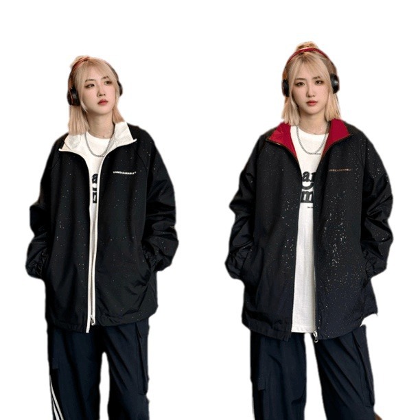 星空双面可穿三条杠夹克 秋季新款男女宽松情侣时尚潮流外套上衣