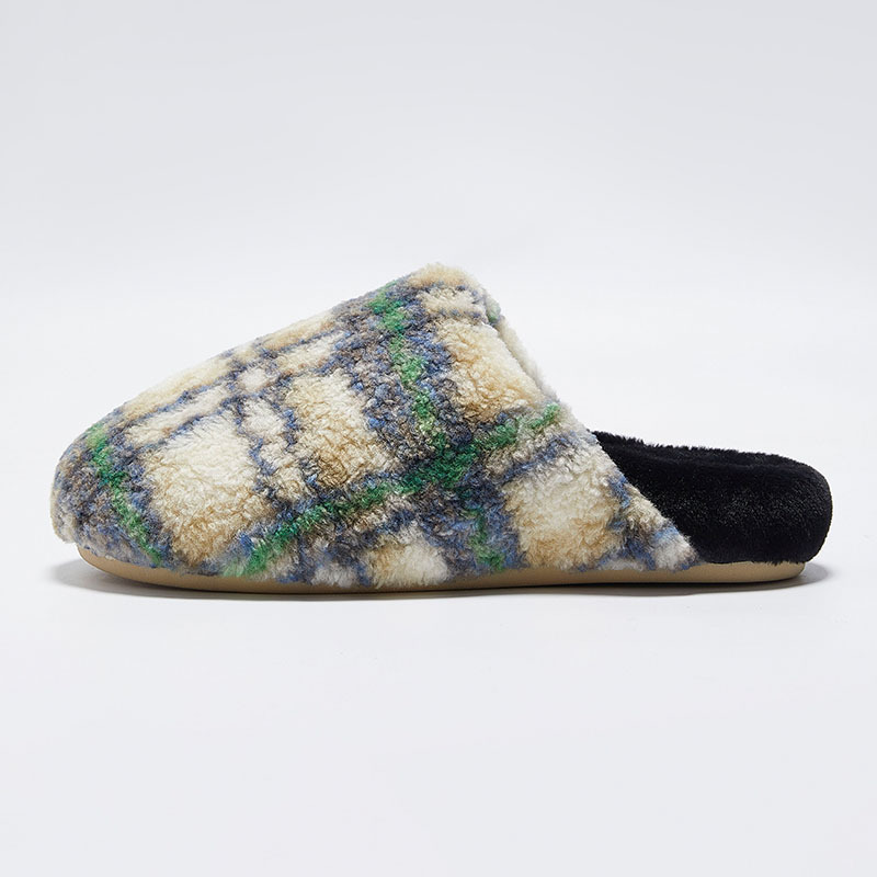 恋家秋冬新品时尚格子条纹舒适居家外穿情侣款男女棉拖鞋