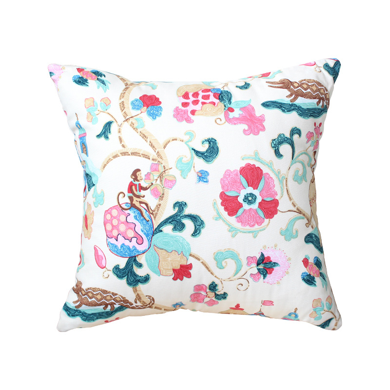 数码印花棉帆布靠垫套水彩腰靠抱枕套几何抱枕沙发靠垫异国风情套