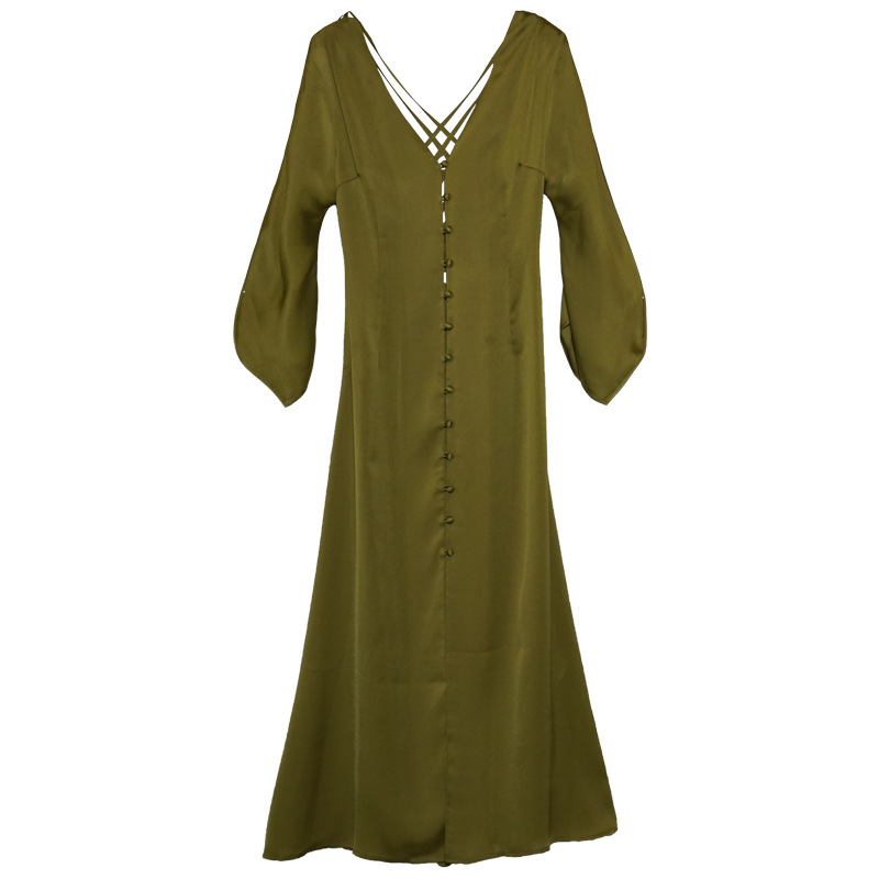 设计师女装 冷淡风后背镂空交叉带海边度假风露背慵懒连衣裙
