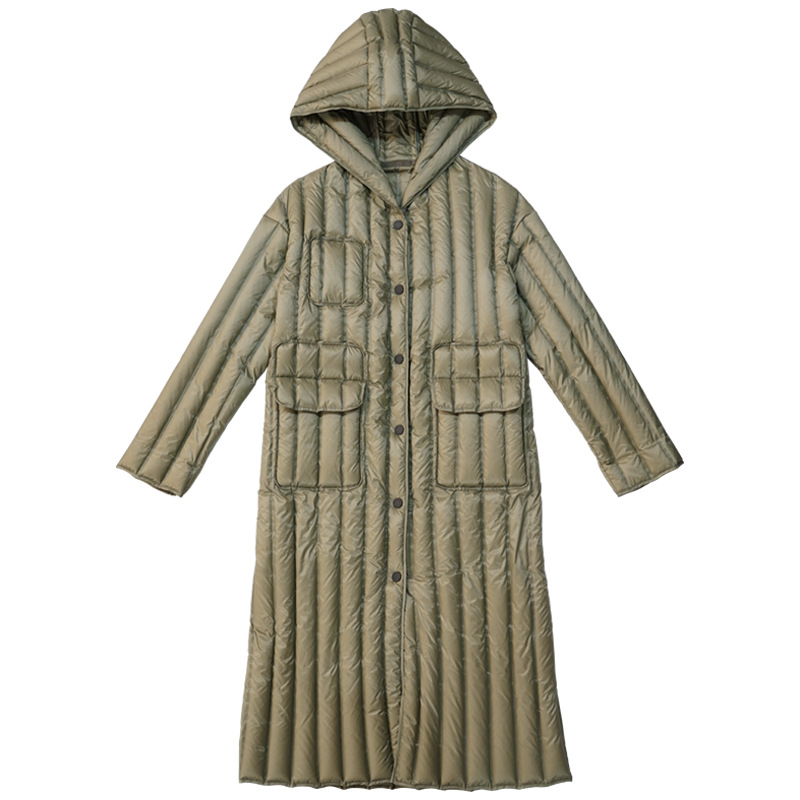 设计师女装 宽松连帽长款压条粘胶白鹅绒羽绒服
