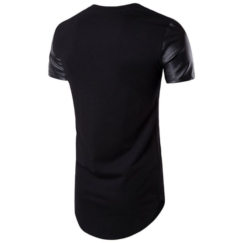 夏新款男士时尚休闲短袖T恤 个性拼皮圆领短袖T恤T53