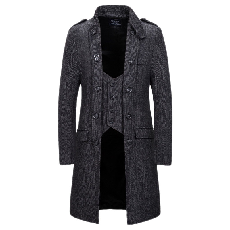 2022秋冬新款欧码男士外套跨境外贸中长款型男假两件呢子大衣风衣