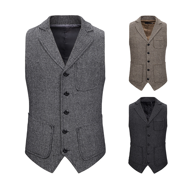 外贸批发男款人字呢单排扣翻领男士马甲 型男西装马夹男装批发