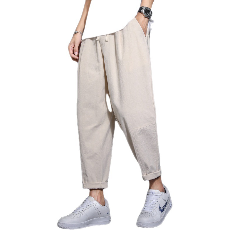 2025夏季休闲裤子男士棉麻宽松亚麻裤韩版潮流长裤直筒K22