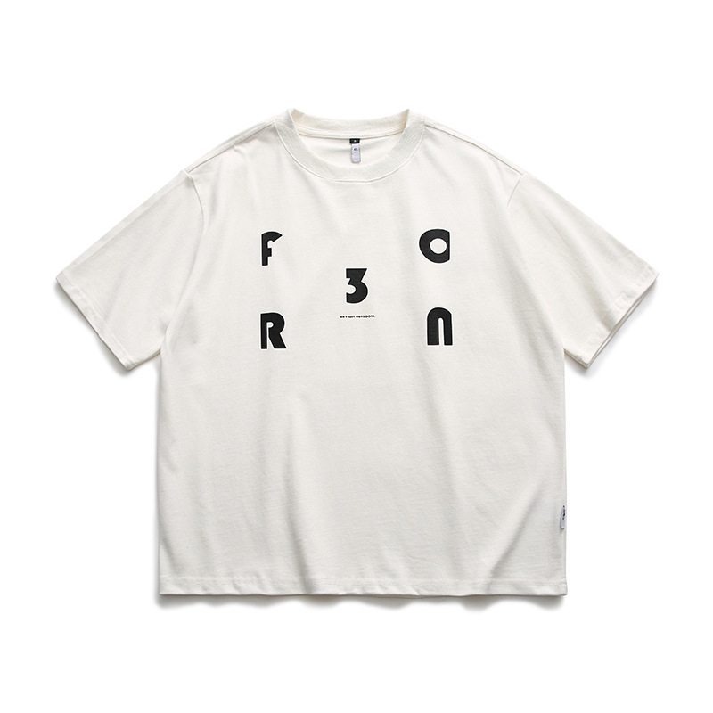 ATBORDER 夏季纯棉字母印花圆领五分短袖男日系潮牌重磅宽松体T恤