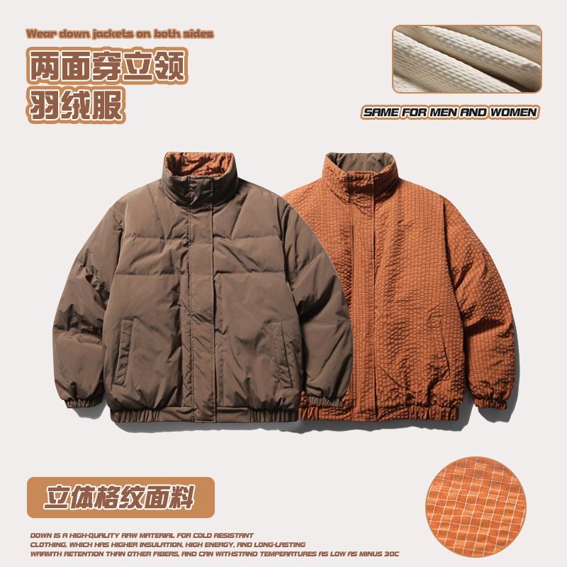 90白鸭绒立领羽绒服男士2023冬季双面穿短款羽绒外套男冬款面包服